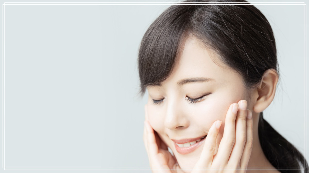 全体に伸ばしたあとに最後に両手でお顔を抑え込みますよね。そこで、手で上から軽く抑えるように肌を覆いこむようにしてください。