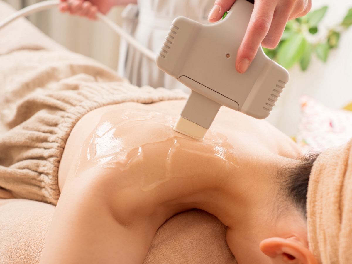 広範囲に照射してくれるので皮下で蓄積された熱が徐々に広がり細胞にダメージを与える。一点集中型ではないので痛みを軽減させることが出来る。